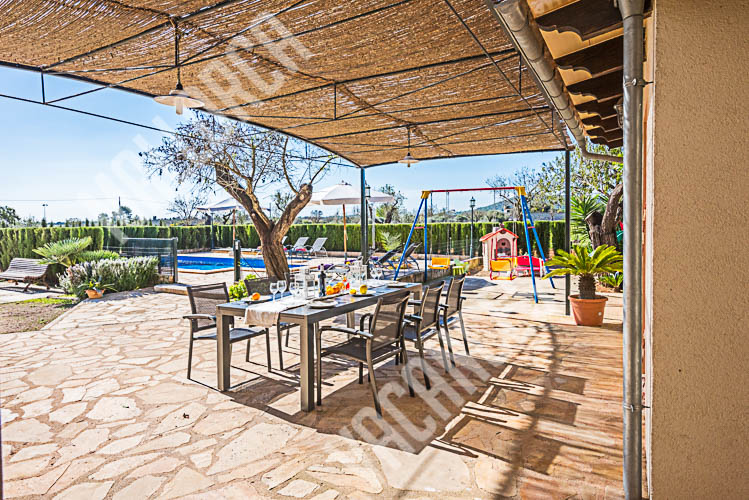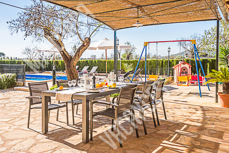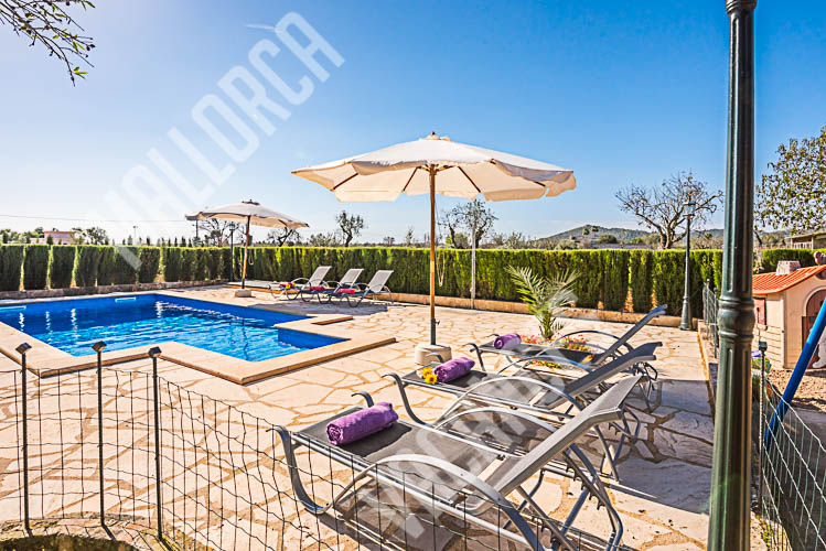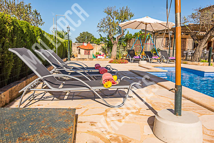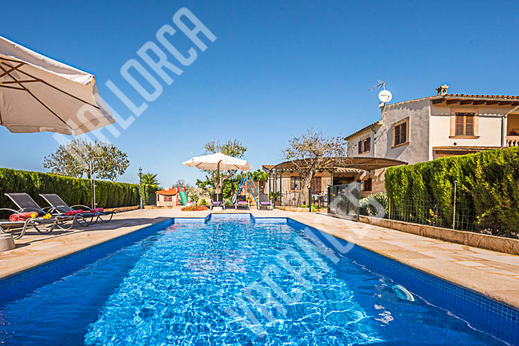 Casa, Chalet hubicada en una parcela de aprox 3700m y una suerficie construida de 216m2 , con una piscina de 6x4m en el lateral de la casa junto a la zona de barbacoa, la estancia contiene tres habitaciones , dos con camas individuales y una con cama doble, dos baños en el interior de la casa y un aseo en la zona exterior junto a la piscina, en el lateral de la cas apodemos encontrar una zona de grill,barbacoa con una mesa a modo de comedor que hace que la zona de juego para niños,la piscina y la terraza se convierta en un lugar de estancia ideal para ver las puestas de Sol.La capacidad de la casa es de seis viajeros mas dos bebes en su correspondiente cuna, la prorpiedad esta hubicada en el terminoo municipal de Porreres y esta a tan solo 500m del centro de la localidad, el aeropuerto de Palma de Mallorca se situa a 25 minutos aprox en coche y como norma general el trafico es fluido, como Lugares de interes podemos recalcar que esta aproximadamente a15 kilometros estan las playas de es Trenc, Ses Covetes y la Colonia de Sant Jordi